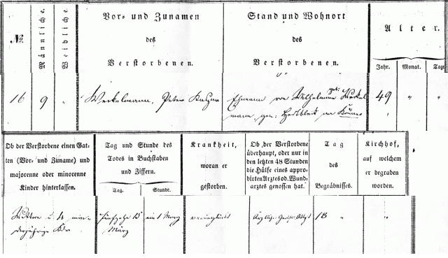 fünfzehn 15 März / (?) Morg / verunglückt / ärztliches